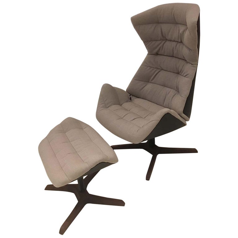 Swivel Lounge Chair With Recline Ottoman With Walnut Base By Gebruder Thonet