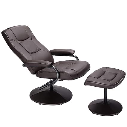 Homcom Leather Recliner And Ottoman Set Swivel Lounge Chair With Storage Footrest Wood Base Living Room Furniture Brown
